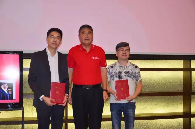 bevictor伟德官网徐二明经理为智美科技CEO陈子杰、潮宏基电商总经理张天兵颁发了伟德国际唯一官网入口MBA教育中心企业导师聘书。