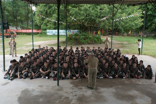 同学们们在素质拓展基地教官的带领下,换上迷彩服,投入紧张有序的拓展活动。趣味横生的活动,让原本陌生的新生们彼此熟悉,迅速进入训练状态。团队组建、七巧板、背摔、极地取水、极速60秒,以及跨越毕业线等各类PK,考验并锻炼着同学们的个人配合、互相信任与团队合作能力。夜幕中,烧烤晚宴与篝火晚会,同学们与教官围坐在篝火旁边共叙情谊,小雨不断却依然挡不住大家的热情。
