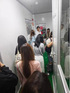 随后,师生一行参观了生产车间,近距离了解GMP万级无菌净化车间与自动化生产线的运作模式。员工们还深入了解了企业在质量管控与标准化生产方面的先进实践,期间不断为我国食品产业的发展水平与严谨流程赞叹不已。泰国员工感慨地说:“中国企业在泰国积累的成功经验,为我未来的职业发展提供了极具价值的借鉴与启发。我期望在汕大这个巨大的平台中,通过不断提升自身的专业素养和综合能力,成为推动中泰经贸合作的重要桥梁。”