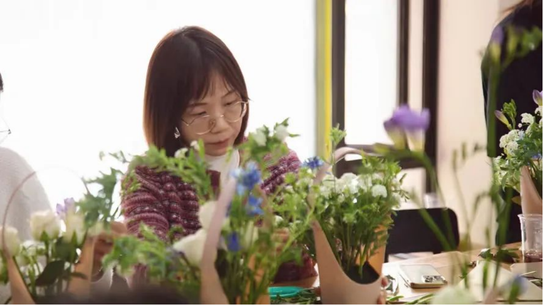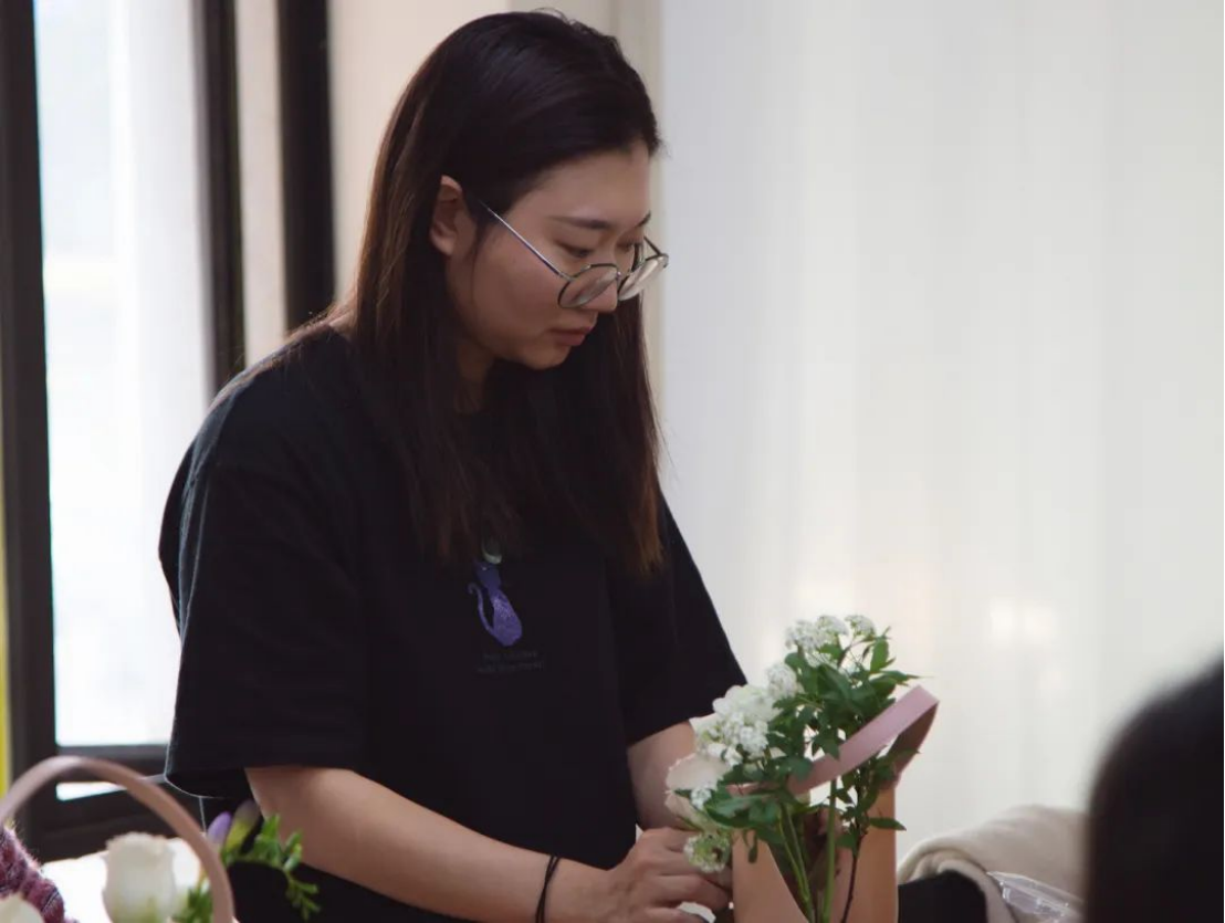 活动包含花艺讲座和插花实践两部分,邀请专业花艺师进行现场花艺培训。花艺师现场为大家详细介绍花泥的泡法以及插花艺术中关于层次、色彩、造型等方面的要点等。在花艺师的指导下,大家兴致盎然,亲自动手创作,现场气氛活跃,一盆盆错落有致、各具特色的插花作品得到了花艺师的赞赏