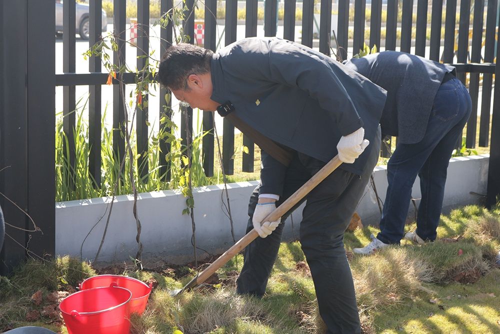 随后,师生们、员工们拿起铁锹,分成两路,走向主校门一侧围墙处和宿舍区H座大门口附近绿化带,有条不紊的分工协作起来,携手种下了承载美好祝愿的炮仗花和秋枫树,为校园添上了春日里的一抹新绿。现场一派干劲十足、热火朝天的景象。