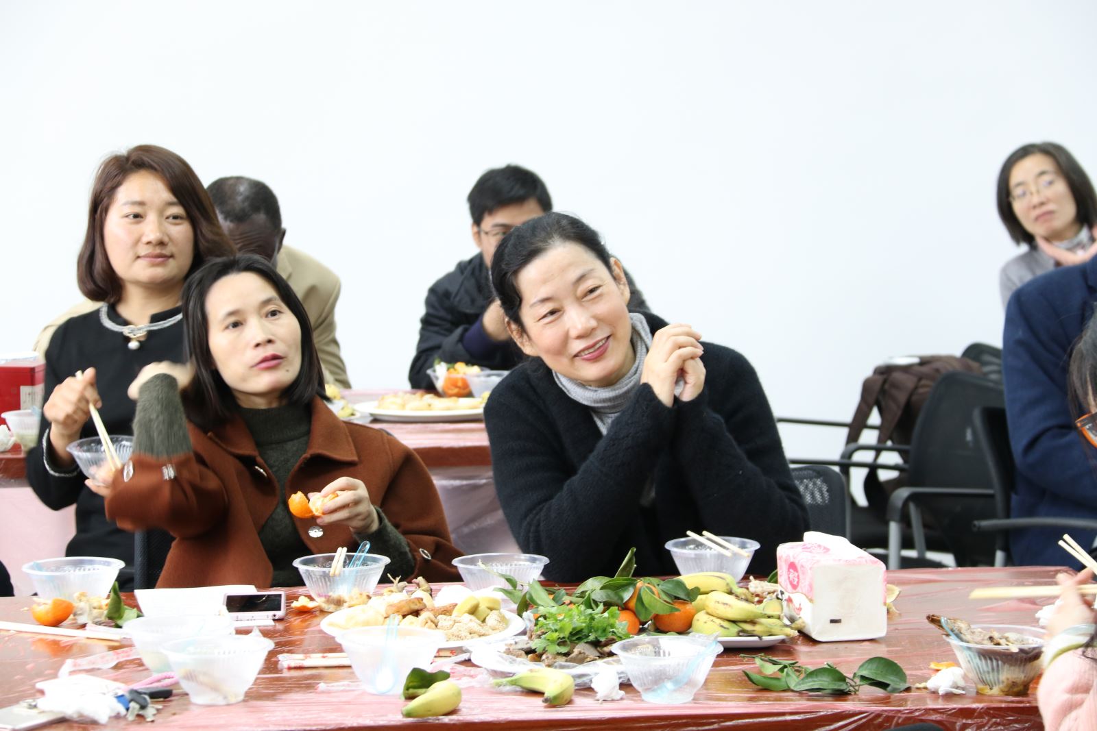 本次茶话会在老师们和行政人员的用心筹备下,用校工会发放的活动费用为大家呈现了一场丰盛的美食和视觉盛宴。丰富的潮汕小吃和有趣的才艺表演深深地吸引在场的每一个人。老师们一边品尝美味的潮汕小吃,一边欣赏老师们的精彩表演。Prof.Ako Doffou深情演绎非洲方言歌曲、Dennis老师、林佳丽老师和行政团队的深情演唱和苏文宏老师的栋笃笑话博得现场阵阵掌声,李进明老师精彩的魔术和催眠表演更是将茶话会的气氛推向高潮。整场活动充满了欢声笑语。茶话会在欢乐融洽的氛围中圆满结束。