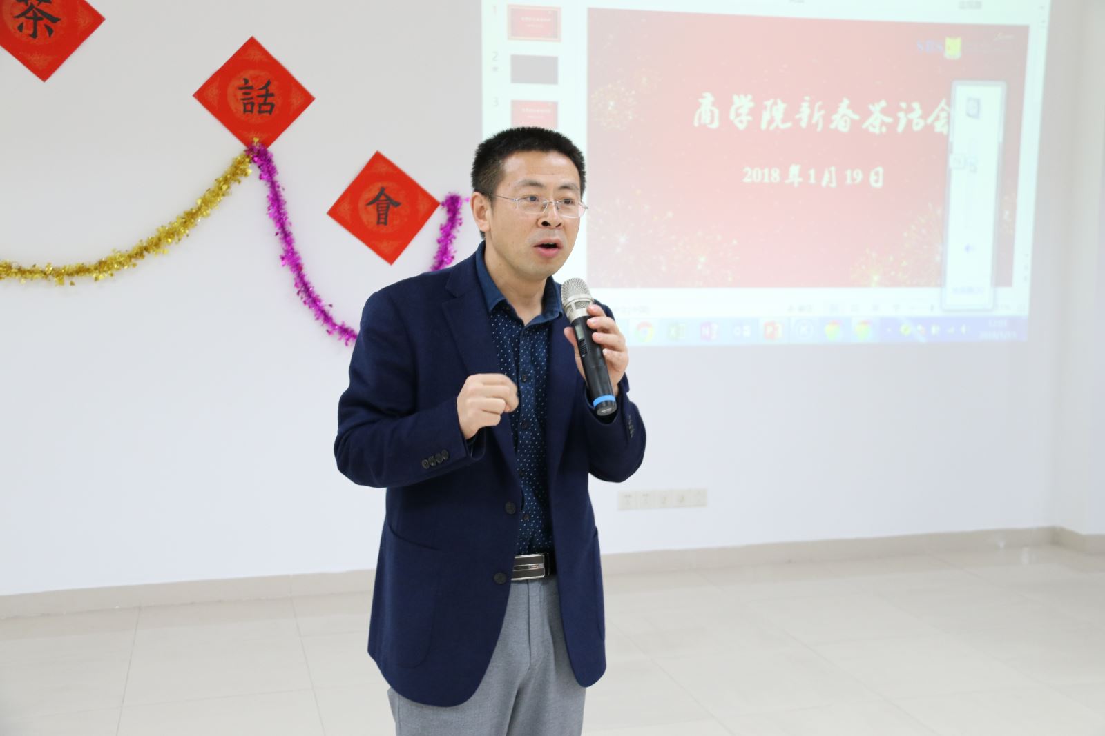 茶话会伊始,徐二明经理、高见书记和公司工会主席林华叶老师分别致辞,与大家一同展望朝气蓬勃的2018年并送上新春祝福。