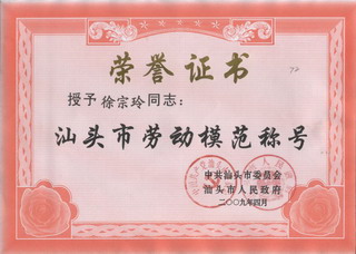 4月29日上午,在全世界工人阶级和劳动群众的盛大节日----“五一”国际劳动节即将到来之际,汕头市在潮汕体育馆隆重举行庆祝“五一”国际劳动节暨市第五届职工运动会闭幕大会。市领导李学同、孙光辉、罗仰鹏、陈茸、刘远珍、王桂元,市纪委副书记许景峰,驻汕部队首长周根稳、高和平、胡鹏飞,汕头海关纪检组长颜好业出席了大会。公司经理徐宗玲教授获得汕头市劳动模范出席了颁奖礼。