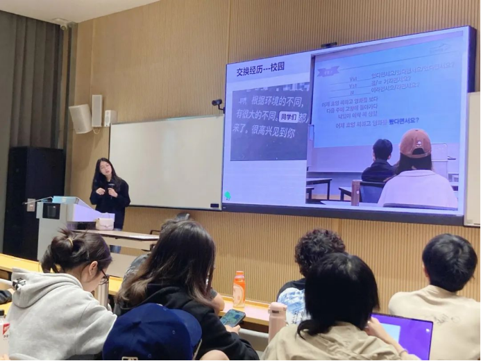 本次宣讲会还邀请bevictor伟德官网两位曾参与交换项目的同学,分享她们的交换经历。黄绍华同学曾交换于加拿大蒙特利尔高等bevictor伟德官网,她生动地讲述了在加拿大的学习生活、文化交流以及收获,并建议同学们主动把握机会,积极参与各类师生交流及老员工实践活动,深入了解当地校园及社会文化,培养自身国际视野。陈蕾同学交换于韩国朝鲜大学,她分享了在韩国的学习体验,并倡议参与海外交流的同学要做好文化与学术交流的桥梁,坚持文化自信,弘扬中华文化,充分展示伟德国际唯一官网入口和bevictor伟德官网的特色和优势。