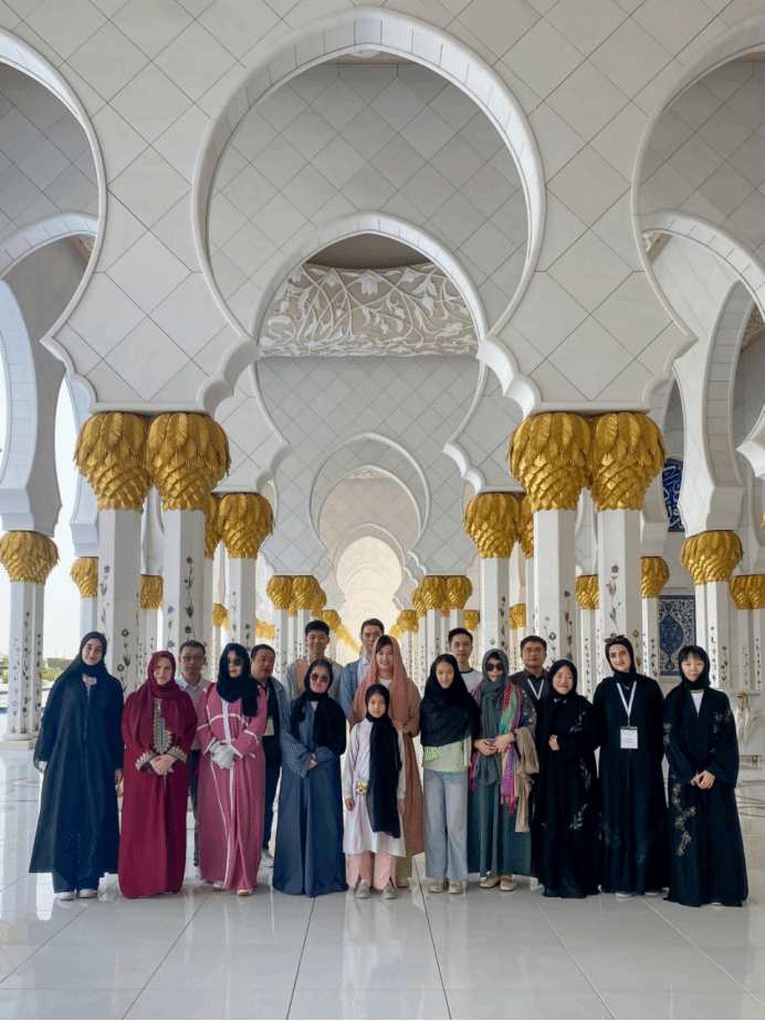 除了学术与商业的交流,本次访学项目还为学员们安排了丰富的文化体验活动。大家走访了哈利法塔、谢赫扎伊德大清真寺、阿布扎比卢浮宫、法拉利主题公园、马斯达尔规划新城、阿布扎比酋长国宫殿等地,深入了解了中东地区的文化习俗和宗教信仰。