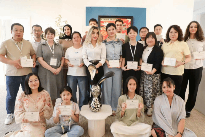 在本次访学项目中,文化与商业的交融同样精彩。遵循世界非物质文化遗产保护中心原则成立的Ruya文化创意平台,专注于非物质文化遗产的保护与创意转化。企业家学员们实地参观了平台的艺术展,与艺术家面对面交流,共同探讨如何借助文化IP实现商业价值。