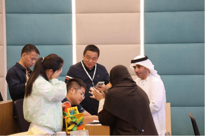 商业融合探索在专题环节的品牌本地化海报展示中得到了进一步延伸。企业家学员与当地企业家围绕 “中阿品牌互鉴” 主题分享实践成果,借助翻译工具实现中英文顺畅沟通,不仅为潮汕玩具、内衣等产品规划了新品牌架构,更深度挖掘了特色产品的创新路径。中阿两国企业家聚焦 “如何将文化元素融入品牌策略” 展开深入探讨,为产品本土化、跨境商业发展等领域提出了全新思路,以文化魅力推动商业发展。