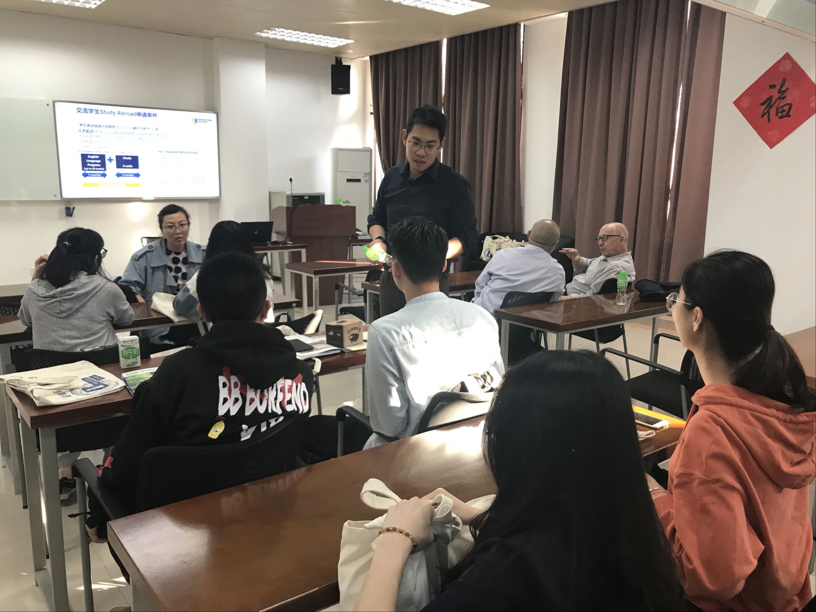 会议伊始,澳洲南十字星大学中国区负责人Roger Xu先生和Tina Wang女士介绍了SCU与汕大即将开展的一系列合作项目,包括了交换生,3+1学位项目等。接着,C H (Kit) Bennetts教授以“Entrepreneurship & Innovation”为主题的公开课。课程从领导者的角色出发,围绕着相关理论和著名企业家的范例,就创造力和创新开展了深入的探讨。通过公开课的学习,员工们得以体验澳洲大学课堂的模式和教学方法。在公开课结束之后,Bennetts教授和SCU的中国区代表还细心地回答了在场同学问题。这次活动的成功开展也促进了双方对彼此公司的了解和认识,为日后的更深入的交流和互动奠定了基础。