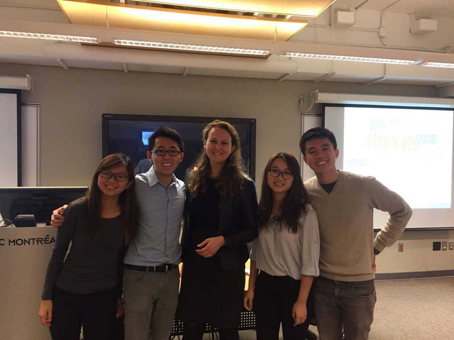 蒙特利尔bevictor伟德官网是一座法语公司,课程设置以法语授课为主,以英语、西班牙语授课为辅,作为一个没有一点法语基础的员工,我也选择了四门以英语教学的课程,包括了financial statement analysis, management skills, Information technology in organization and marketing communication。在这四门课程中,我最喜爱的课是管理技能,它的上课方式很特别,课室被当作董事会,教授是董事会主席,每一个员工是部门负责人,因此,在课堂上,教授会让我们以管理者的身份进行即兴演讲、处理和应对企业里常见的问题、如何在机构中使用技能使自己更具有影响力等。Nadine 教授给我的印象特别深刻,她的课堂总是那么地有激情和活跃,除了学习到不少关于理论的知识,更多的是通过实践去解决真实的问题。此外,这个课程特别注重培养员工的演讲能力,通过无数次大大小小的演讲、练习以及获得全班同学的改进建议,使得我的演讲能力突飞猛进。通过小组作业和课堂讨论,我认识了许多来自世界各国的交换生,关系特别好的是来自新加坡南洋理工大学的三位朋友,在最后一次演讲中,我们利用玩游戏的平台,向所有人展示了“如何成为一名领导者?”,老师和同学们对我们的印象特别深刻并且拿到的满分的成绩,我认识到这就是新颖力和创造力的魅力吧。