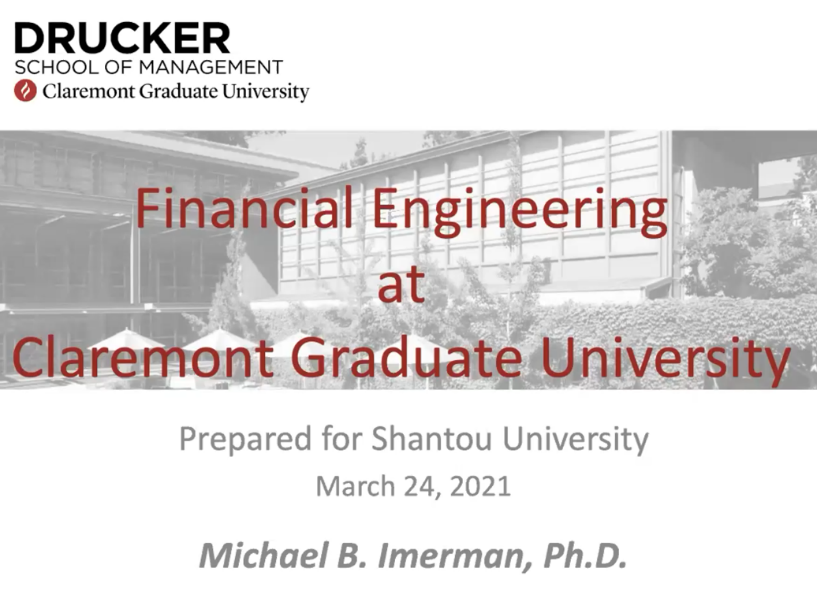 紧接着,Henry Schellhorn教授就“Financial Engineering at CGU”和“The Economics of Fin Tech: Understanding Digital Transformation in Financial Services”的主题与公司师生做了精彩的线上学术交流,分享了金融工程最新的发展趋势和他的研究项目,师生们受益匪浅。会议的最后,两位教授耐心认真地为公司师生答疑解惑。