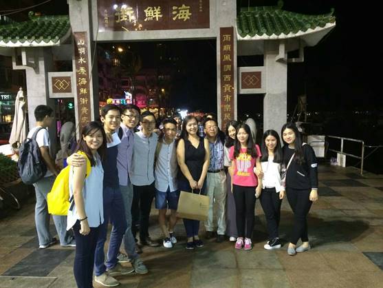 公司代表队在海鲜晚宴后与新加坡队伍合影