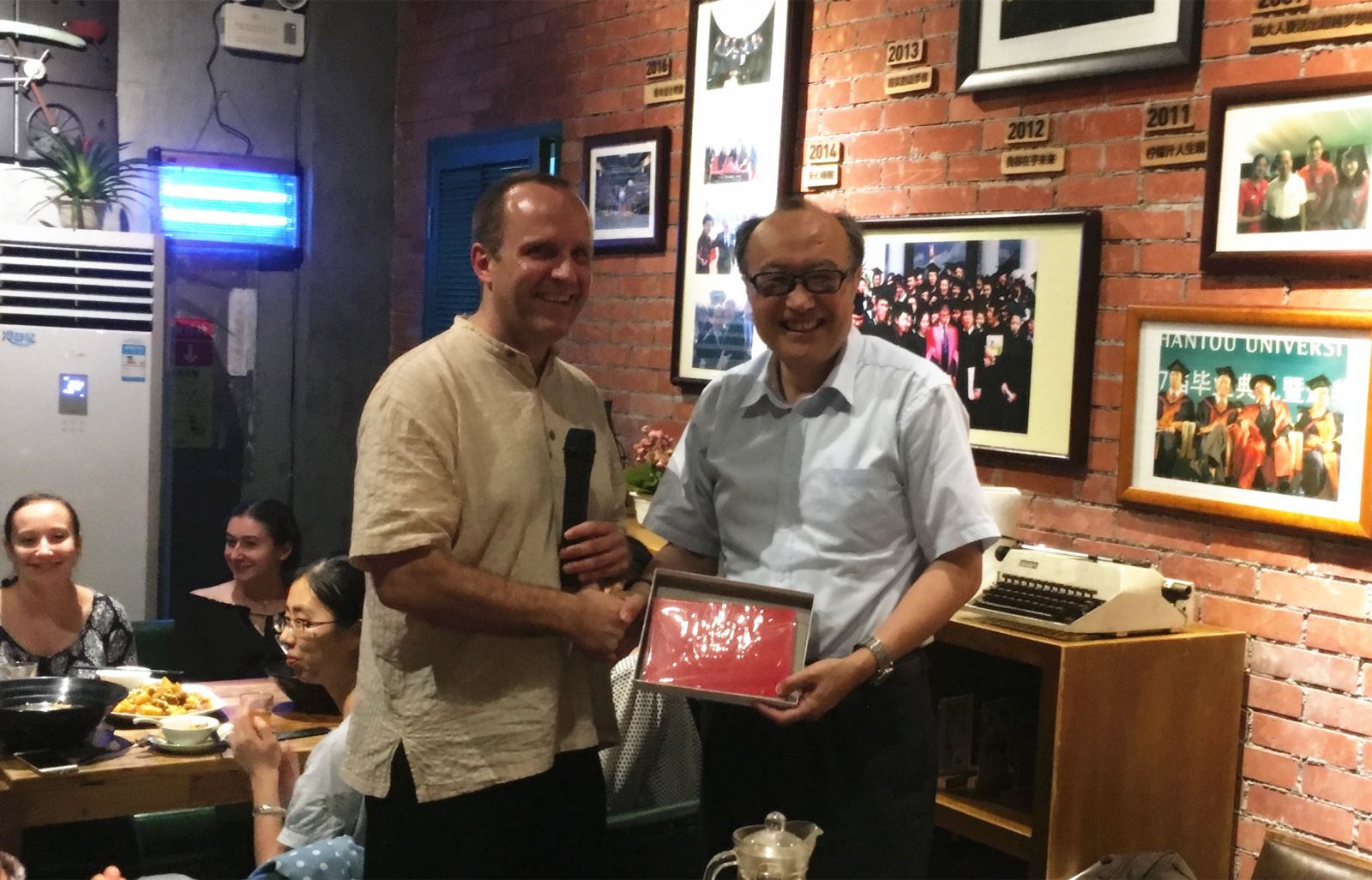 快乐的时光总是短暂的,转眼就到了麦吉尔员工此次暑期中国行的最后一天,麦吉尔大学的员工们以及指导老师和bevictor伟德官网的老师、志愿者们在1981西餐厅一起共进了farewell party。在party上播放了麦吉尔大学交流生们在汕头的相片有如一首永恒的歌,在麦吉尔大学的交流生与志愿者们心里一直循环播放着。麦吉尔大学的领队老师以及bevictor伟德官网吕源经理都发表了自己对本次交流项目的感受。在西餐厅的觥筹交错的光影中,大家贪恋着最后相聚一起的时光,共同举杯,本次交流项目也正式落下帷幕。