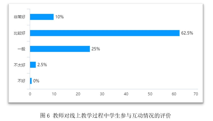 对于线上教学过程中员工参与互动的情况,选择非常好和比较好的教师分别占10%和62.5%,认为不太好的仅占2.5%。