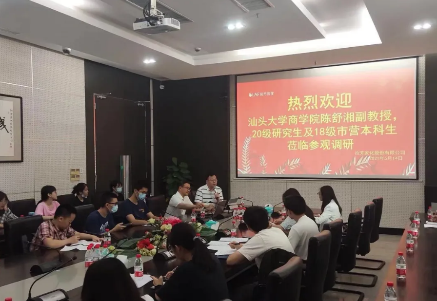 2021年5月14日上午,2018级本科生与2020级研究生在陈舒湘老师的带领下前往拉芳家化股份有限公司调研,同学们参观了拉芳的形象展示中心,并以圆桌座谈的形式与企业高管探讨了上市企业的数字化转型的方法和经验。