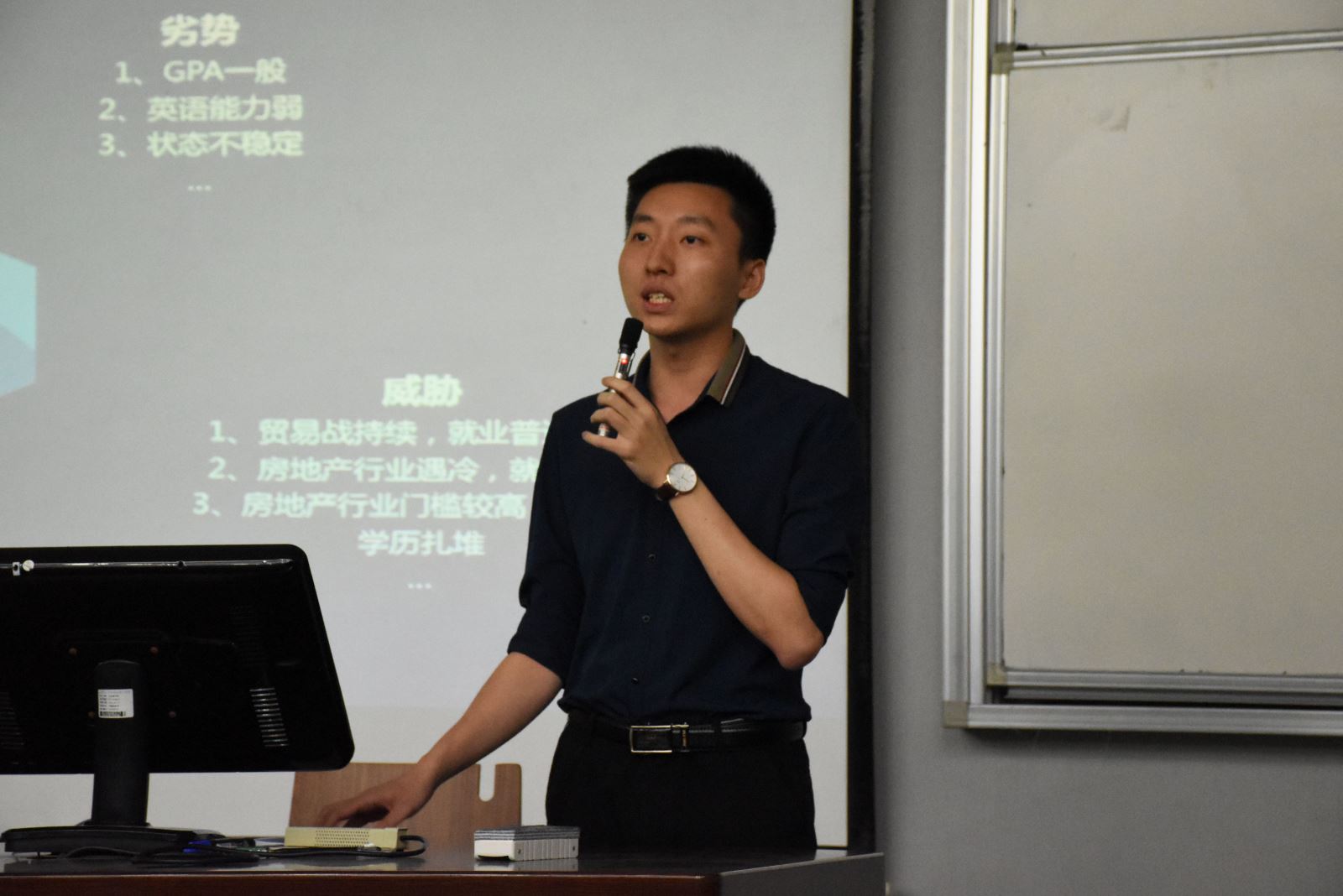 陈锐轩同学也认可实习机会对工作的重要性,同时,他还强调自我分析也很重要,他表示SWOT分析可以帮助同学们了解自己的劣势和长处,这样能更好地查缺补漏。此外,他还展示了面试的一整套标准流程并介绍了各个环节的差异和要点,让同学们对面试有了新的认识。