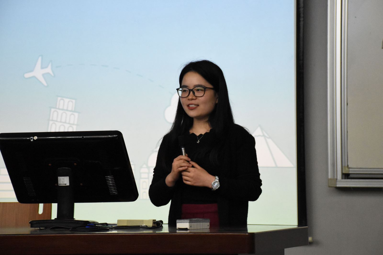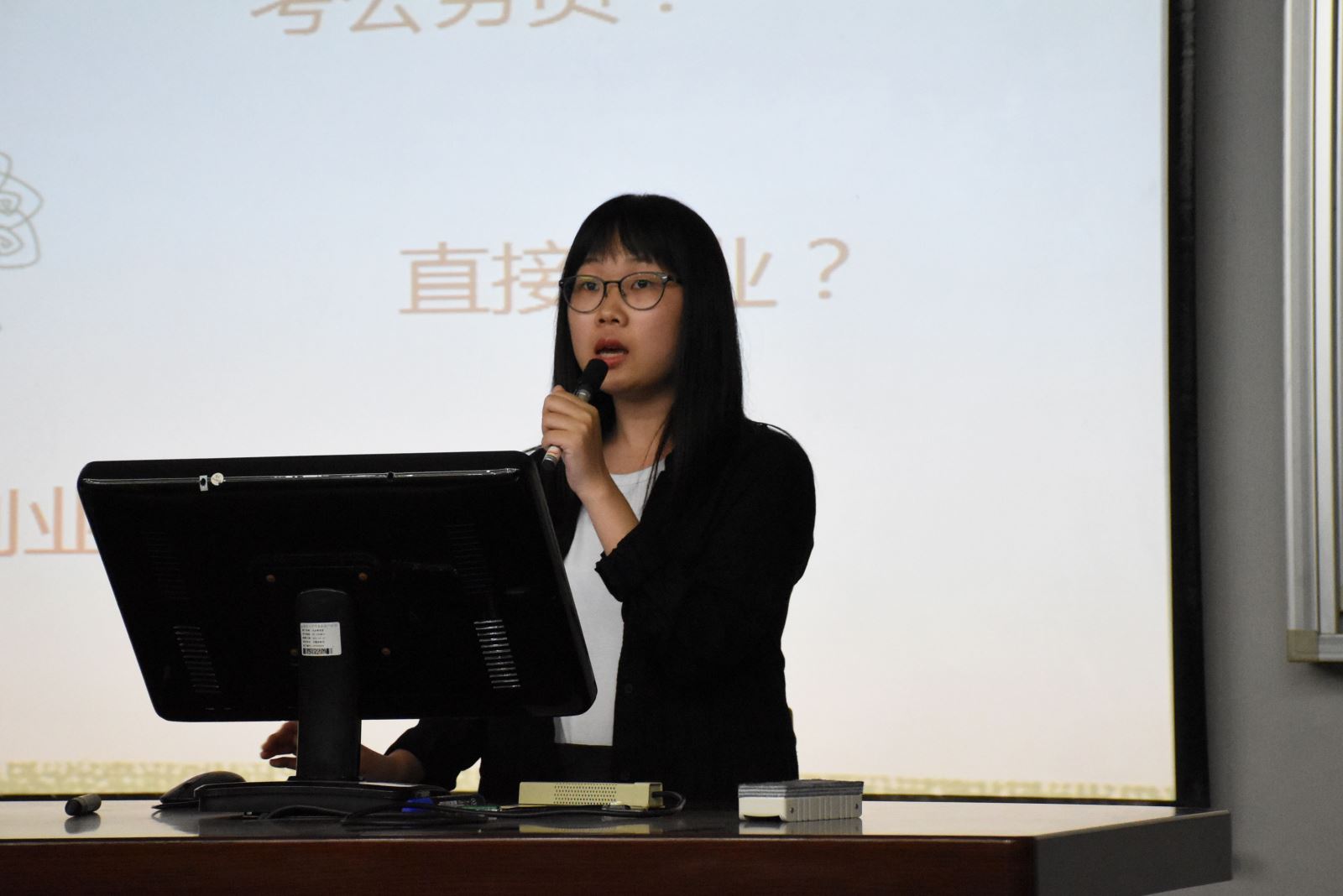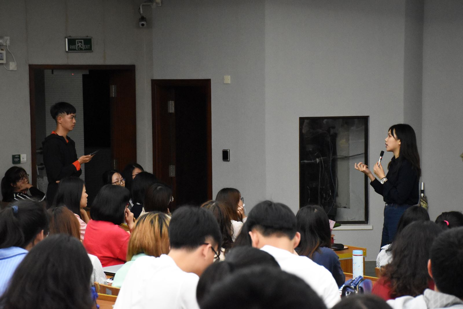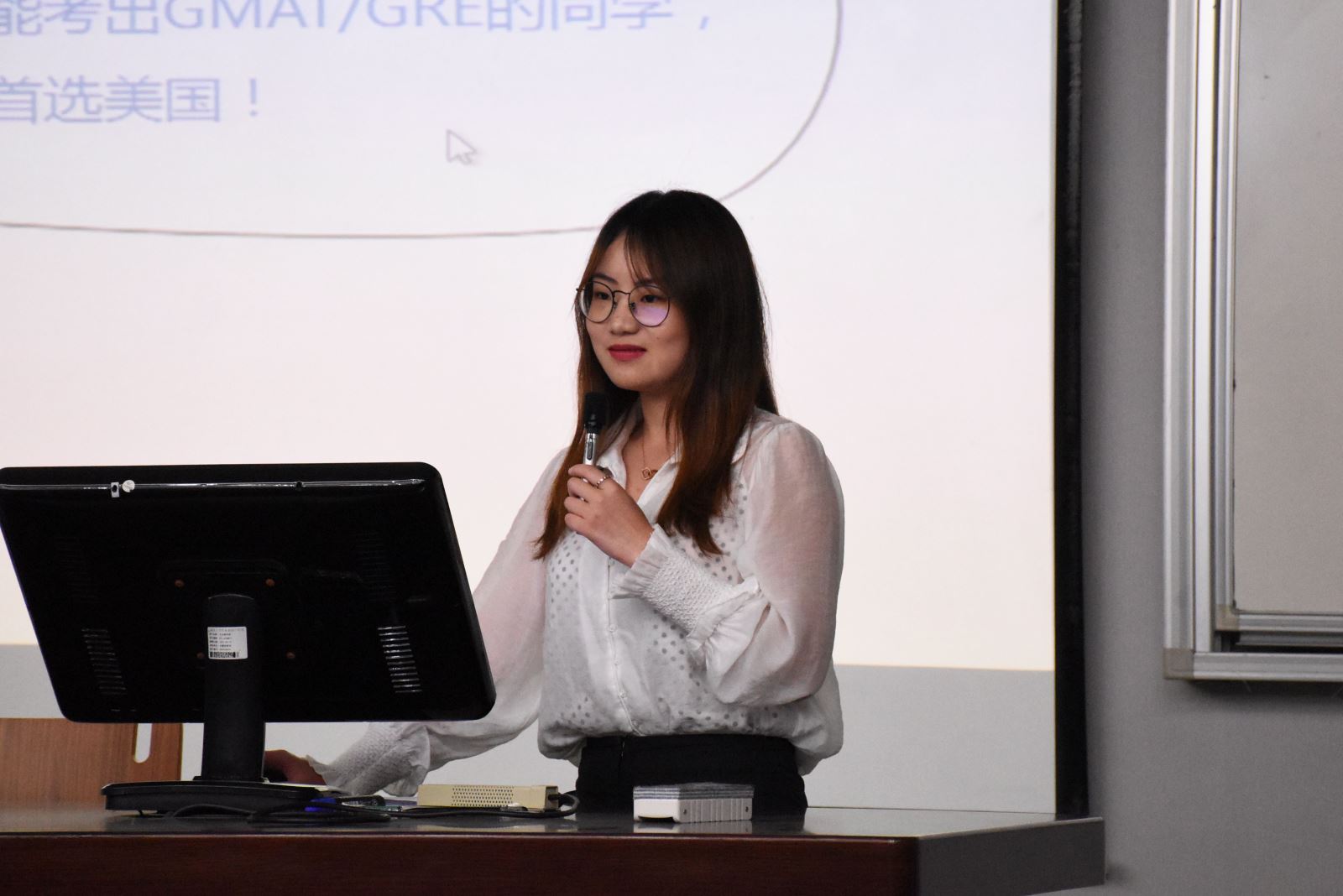 在申请国外研究生方面,邱嘉柔同学以英国为例,从地理位置、公司排名、中国人比例、课程设置、入学要求等方面向同学们详细介绍了申研的过程和注意事项。