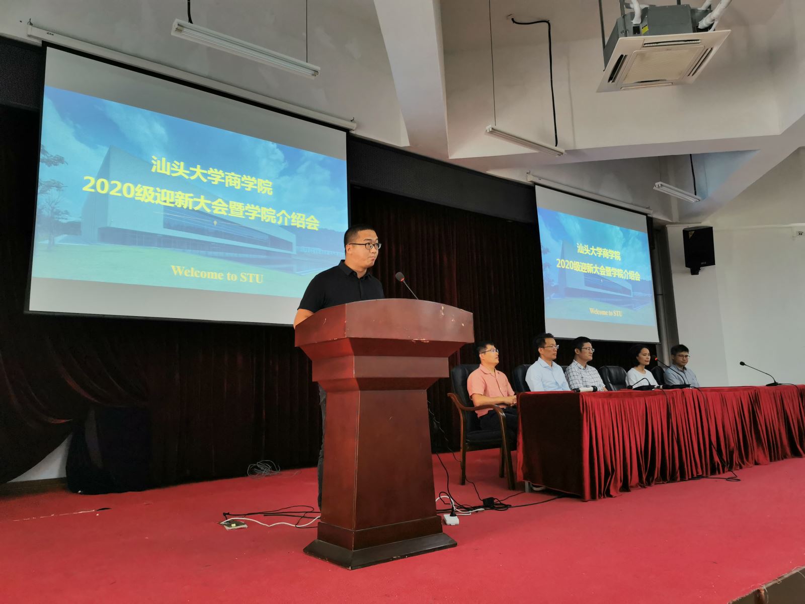 2020年10月11日下午3:00,2020级本科迎新大会暨公司介绍会在过渡校区报告厅举行。公司党总支书记邹志波、主管教学副经理龙月娥、应用经济系主任郑慕强、企业管理系主任周军杰、会计与财务系主任温日光、教务办公室老师和2020级全体本科新生共同出席大会。本次大会还特别邀请了汕头市澄海区人民检察院检察官黄杨喆为新生开展安全教育讲座。