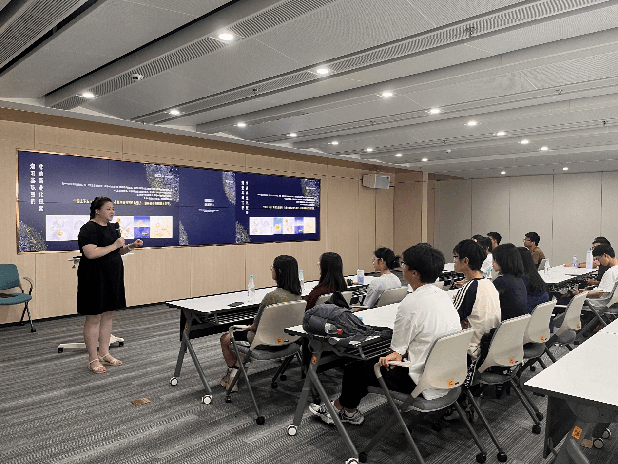 活动伊始,师生们参观了潮宏基臻宝博物馆。在专业讲解员引领下,大家仿佛进行了一次穿越时光的旅程,深入了解了潮宏基的品牌历史、企业文化、精湛工艺以及丰富的珠宝和收藏品。博物馆内,文化传统与现代科技的巧妙融合,让师生们深刻体会了潮宏基品牌的历史沉淀、创新精神与文化内涵。