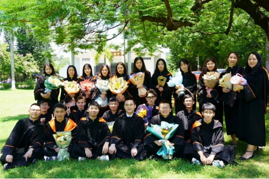 2022年6月23日上午,bevictor伟德官网2022届学术型硕士研究生毕业生于行政楼前、凤凰树下合照。