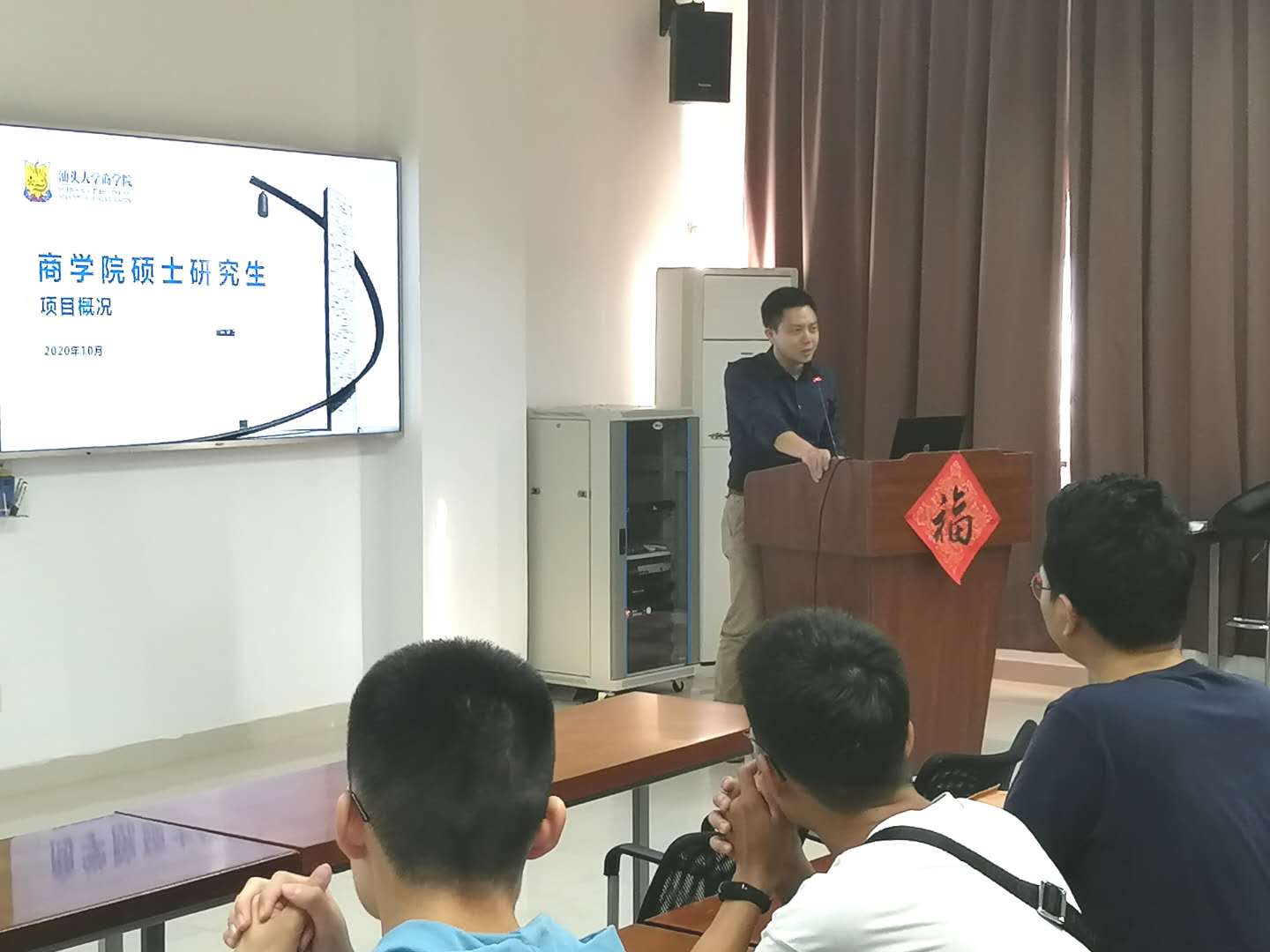 企业管理系周军杰主任介绍了企管系的培养特色,并用自己指导的研究生升学读博的例子,鼓励同学们勤学笃思,坚持不懈,让优秀成为一种习惯,用积累造就未来的幸运。