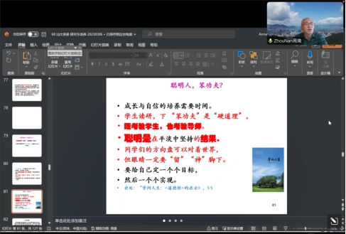 周教授讲到研究生的培养,既考验员工,也考验导师。员工应做到两个“善于”:善于展示进度,适时报告困惑;善于沟通,定期约见导师,解决困惑;导师应做到两个“善于”:善于安排时间,善解人意,不可“居高临下”,而应该体贴员工,在关键处“点+拨”,让他们保持信息与动力,早日毕业。周教授认为写论文可以用阴阳图解释,包括四个阶段:1. 一点都写不出;2. 写了一些;3 .进展不错;4. 投稿或者答辩。针对前三种情况,周教授提出好论文不是“写出来的”,而是“想出来的”和“改出来的”,先想后写,多想多些,“想”得一清二楚,才能“写”得明明白白。聪明是在平淡中坚持的结果,下“笨”功夫是“硬道理”。