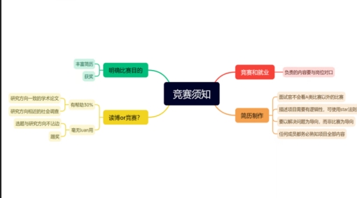 欧阳大漠同学从比赛目的、竞赛和就业、简历制作、竞赛与考博就业的关联等四个方面进行分享,建议结合自身规划参与合适的比赛,项目描述时要学会量化,明确项目针对的问题和解决方案。