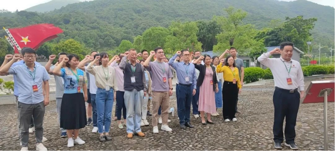 每一次重温都是一次初心回望,每一次回望都是一次思想洗礼。学员们在中共东江特别委员会旧址百庆楼前整齐列队,面向鲜红的党旗,举起右拳,在党委组织部正处级组织员陈映林同志的带领下,重温入党誓词。学员章桂华激动地说,“18年前以一名员工党员的身份播下初心的种子、许下铮铮的誓言,今天重温入党誓词、回首入党初心,像与青春的自己久别重逢,已悄然湿了眼眶。”