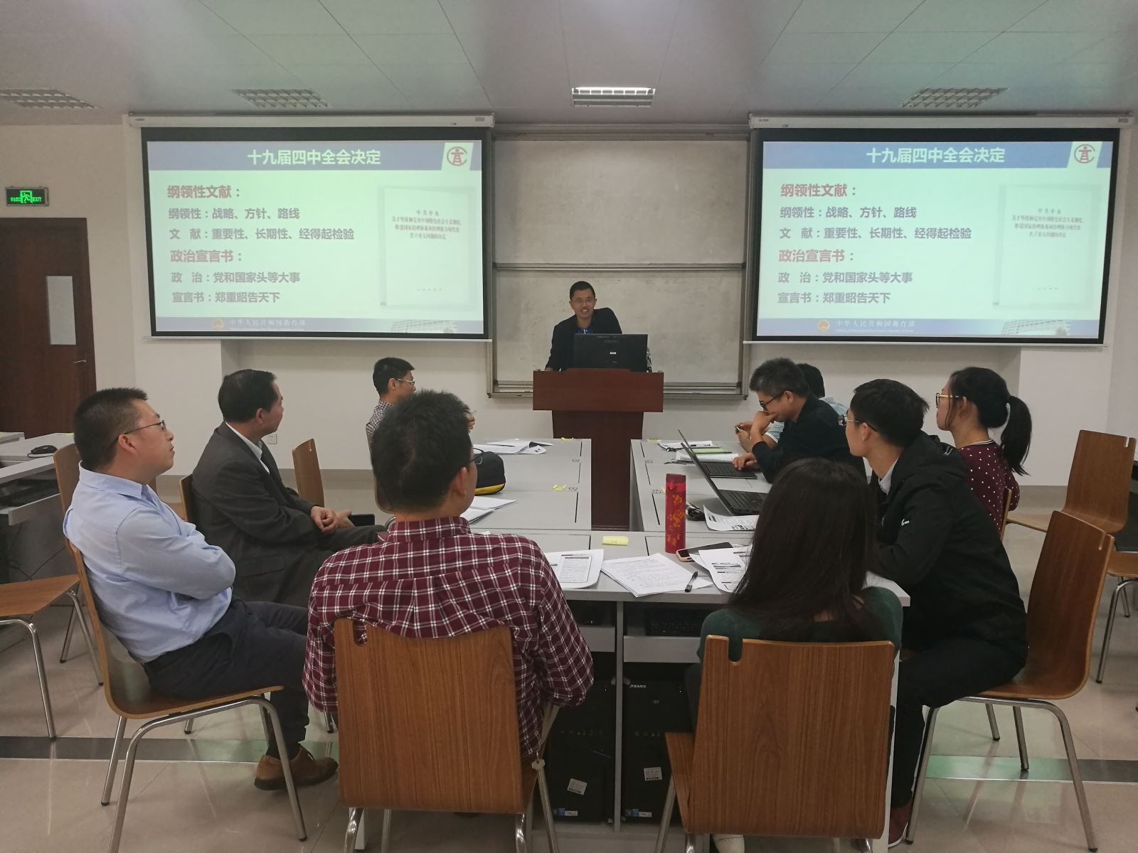 11月20日下午,企业管理系组织全体教师专题学习贯彻党的十九届四中全会精神和《新时代爱国主义教育实施纲要》文件精神。会上,卜祥智副经理解读了党的十九届四中全会精神,强调要将党的十九届四中全会精神、新时代爱国主义教育实施纲要精神贯彻落实到人才培养和教学科研工作中去。与会教师围绕党的十九届四中全会精神和爱国主义教育实施精神,结合人才培养和课程改革进行了深入地研讨,并纷纷表示要把创新理念贯穿到人才培养过程和日常工作中,一同培育具有爱国精神和创新意识的高素质人才。
