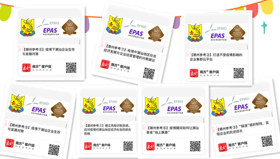卜祥智、郑慕强、梁强、欧阳峰、赵佩华、刘春晖、路继业、周军杰、郭功星、李进明等党员教师、外籍和境外教师,就潮汕地区社会与企业关注的焦点问题积极撰写对策建议,他们的专业观点入编公司发布的《疫情中潮汕地区社会经济发展与企业经营管理的对策建议》,供潮汕地区社会各界参考。