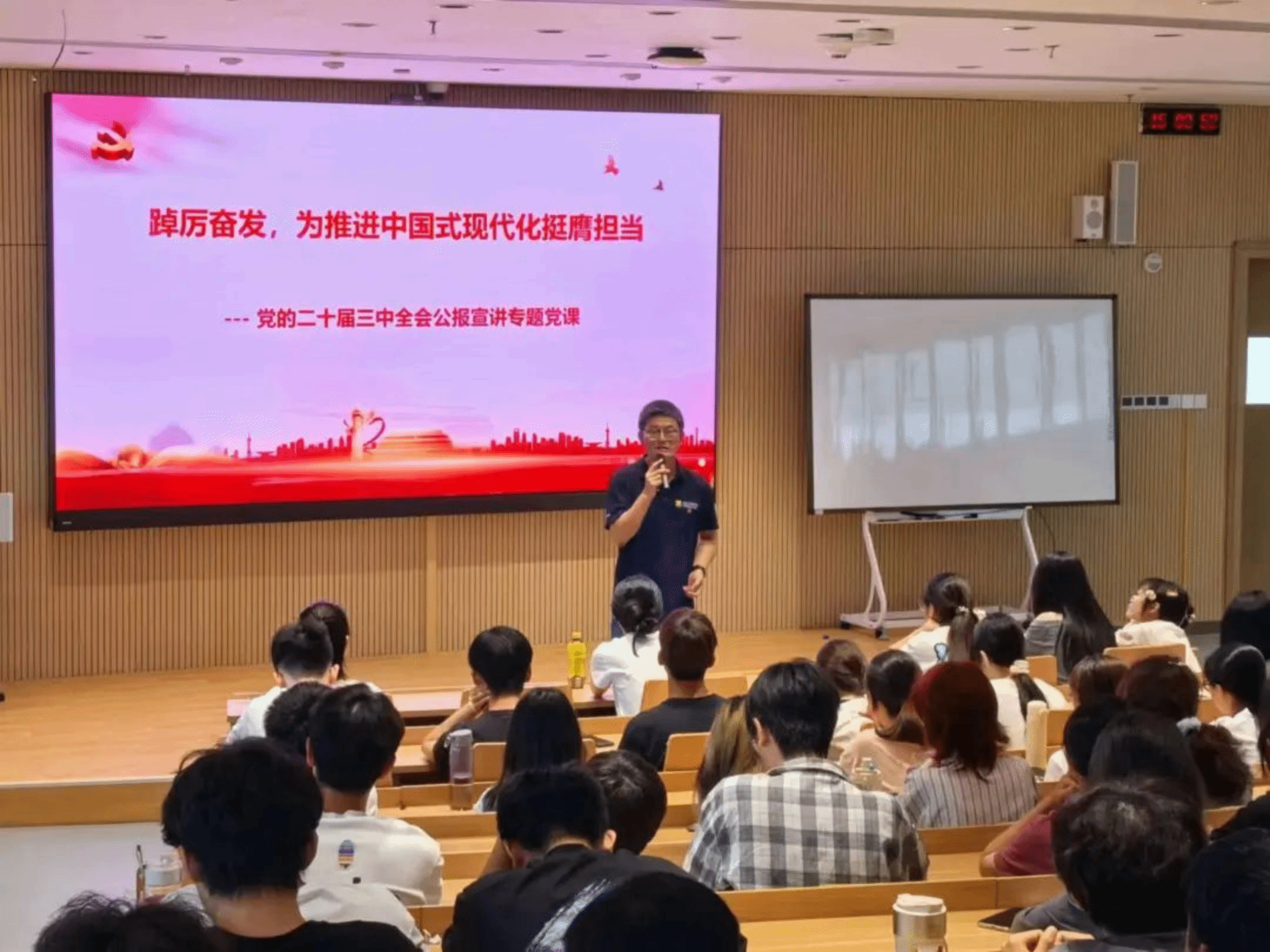 为深入学习贯彻党的二十届三中全会精神,教育引导员工自觉树立和践行社会主义核心价值观,积极投身于社会主义文化强国建设与中华民族伟大复兴的新征程,9月27日下午,公司党委邹志波书记以“踔厉奋发,为推进中国式现代化挺膺担当”为主题,给同学们讲授了一堂生动而深刻的思政第一课。