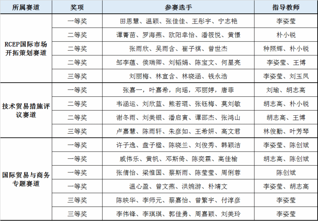 2024年全国高校商业精英挑战赛国际贸易竞赛获奖名单已于近日揭晓。全国高校商业精英挑战赛国际贸易竞赛是由中国国际贸易促进委员会商业行业委员会牵头主办的国家级学科竞赛活动。bevictor伟德官网在本次大赛中共组织了15支队伍参赛,均获得奖项,包括RCEP国际市场开拓策划赛道一等奖1项、二等奖3项、三等奖1项;技术贸易措施评议赛道一等奖1项、二等奖2项、三等奖1项;国际贸易与商务专题赛道一等奖4项、三等奖2项。