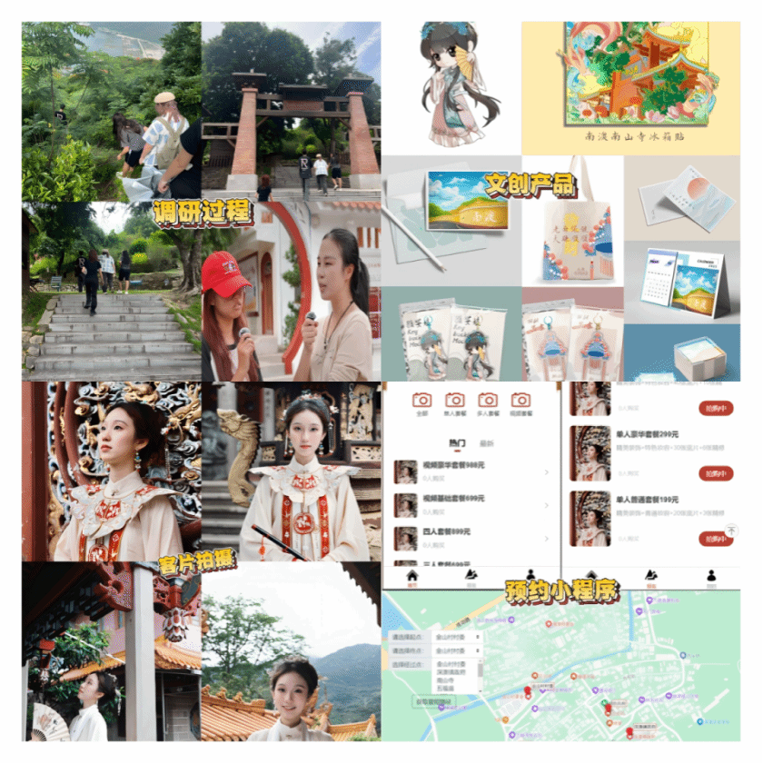《云奔“潮”涌——乡村振兴战略下融入潮汕非遗文化旅拍引领金山村振兴》项目,则以南澳岛金山村为核心,通过专业旅拍服务,结合潮汕非物质文化遗产,推动当地乡村旅游发展。项目围绕金山村的寺庙文化和潮汕传统特色,为客户提供创新式旅拍套餐,让游客在拍摄中深入体验潮汕文化。同时,项目积极与当地旅游部门、餐饮等机构合作,共同开发旅拍产品,提升服务质量,实现资源共享和互利共赢。
