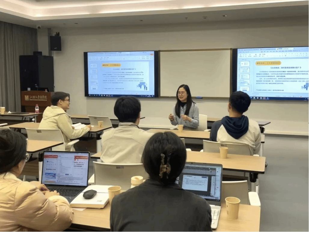接着,张锦煌老师结合亲身经历,将从院赛一路过关斩将到校赛、再到省赛的宝贵经验娓娓道来,强调认真准备、给予足够重视以及对各个环节细节进行精心打磨的重要性。张老师还展示了自己的课堂实录视频,并同步进行细致讲解,更加直观地呈现出优秀课堂的范例以及其中蕴含的要点。