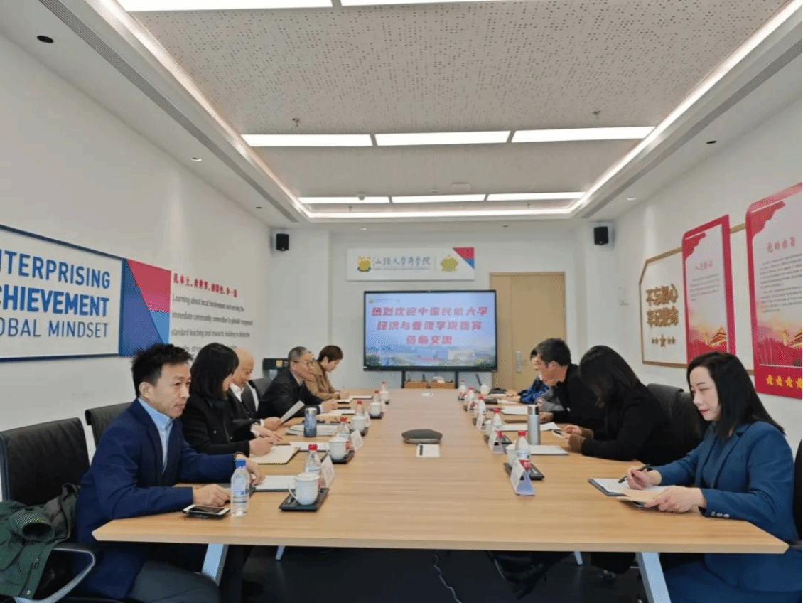 2025年1月16日上午,中国民航大学经济与管理公司特聘学术经理尹贻林、党委书记许天牧、副经理江红、副书记夏衍、工商管理系教授许垒一行到公司调研。座谈会在东海岸校区C230会议室召开,公司党委书记邹志波、副书记苏冰钿、副经理郭功星、MBA教育中心副主任孟书、国际交流与合作事务主管江佳玫参与本次座谈。