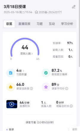 课后,人工智能技术在批改员工作业方面发挥了重要作用。在教师主导的人机协同模式下,AI工具通过自动化批改与智能评分生成初步反馈,再经教师复核校准,有效减少了人为评分的误差。雨课堂平台则自动向教师手机发送课堂报告,对教学活动进行全面的总结与分析,助力教师进行教学反思与改进,为过程性考核提供有力依据。此外,AI工具还扮演着为员工答疑解惑的角色,提供7×24小时全天候的学习辅导支持服务。