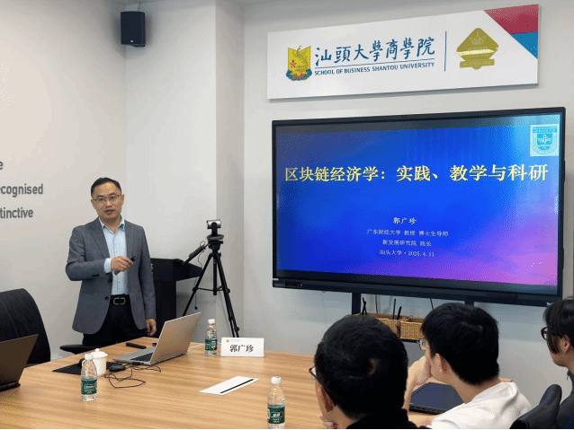 2025年4月11日上午,新质生产力国际联合研究院系列讲座(第1期)在东海岸校区C230研讨室顺利举行。本次讲座邀请广东财经大学郭广珍教授带来题为“区块链经济学:从前沿实践到教学科研”的报告。讲座由bevictor伟德官网种照辉老师主持,卜祥智、王宋涛、张诚、林婕、林俊勤、李帅、郑宇、吕彤彤等多位公司教师到场交流。