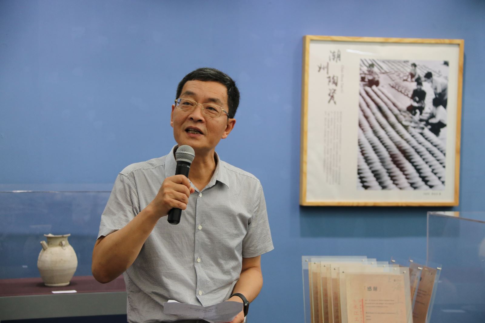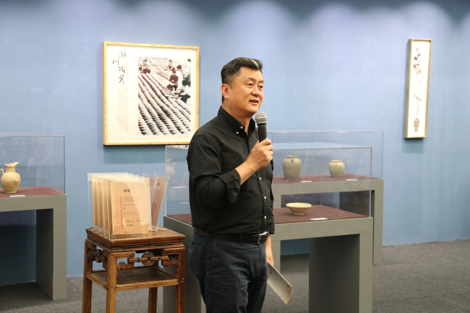 随后,徐二明经理和王受之经理共同为展览捐借展品的收藏家颁发感谢证书。