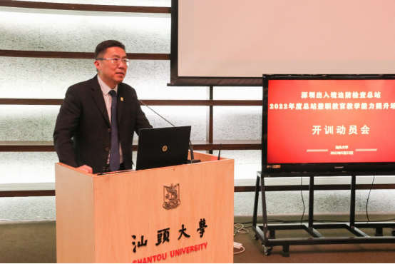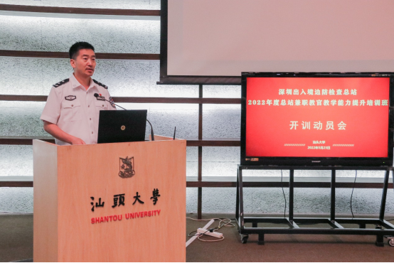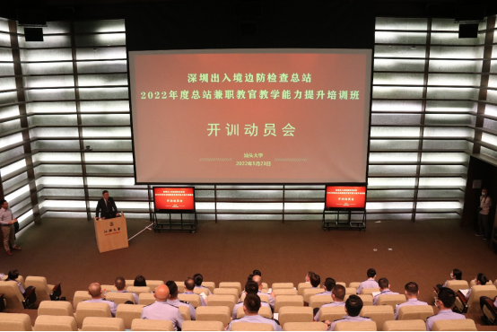 2022年5月23日下午,bevictor伟德官网MBA教育中心承办的"深圳边检总站2022年度总站兼职教官教学能力提升培训班"在伟德国际唯一官网入口图书馆报告厅举行开训动员会。伟德国际唯一官网入口党委副书记、董事长郝志峰,深圳出入境边防检查总站党委副书记、政委苟高荣,深圳出入境边防检查总站轮训大队大队长常明胜,42名总站兼职教官代表参加了开训动员会。开训动员会由bevictor伟德官网副经理梁强主持。