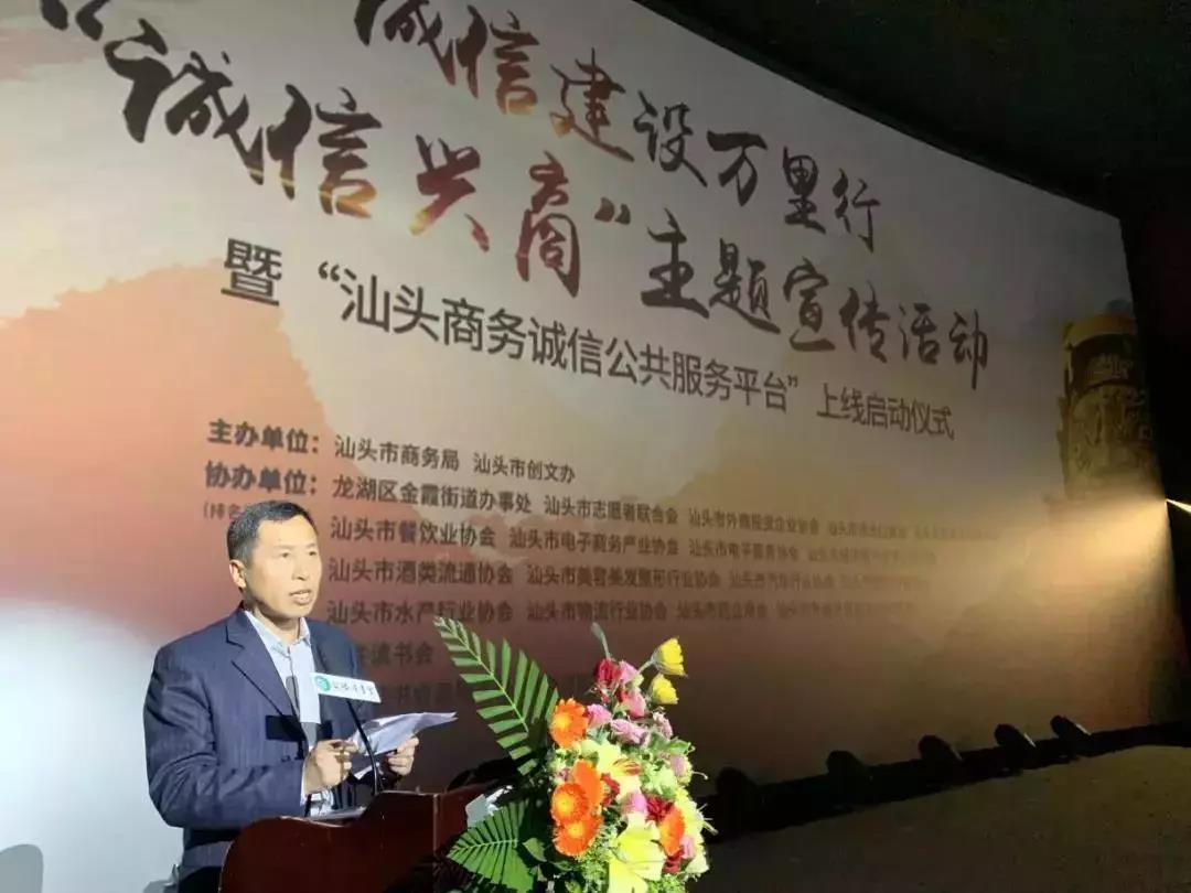 为在全社会大力营造“知信、用信、守信”的良好氛围,积极贯彻落实中共中央宣传部和国家发改委“诚信建设万里行”主题宣传活动精神,践行“落实发展年”工作部署。2019年3月1日上午,由汕头市商务局、市创文办联合主办,汕头市超市供应链协会等多家商协会协办的“诚信兴商”主题宣传活动暨“汕头商务诚信公共服务平台”上线启动仪式在合胜百货影城隆重举办。汕头市商务局郑文鹰副局长参加活动并致辞。全市各相关行业商(协)会、商贸企业代表以及市民观众共300多人参加活动。公司经理徐二明教授受邀出席活动并做专题演讲。