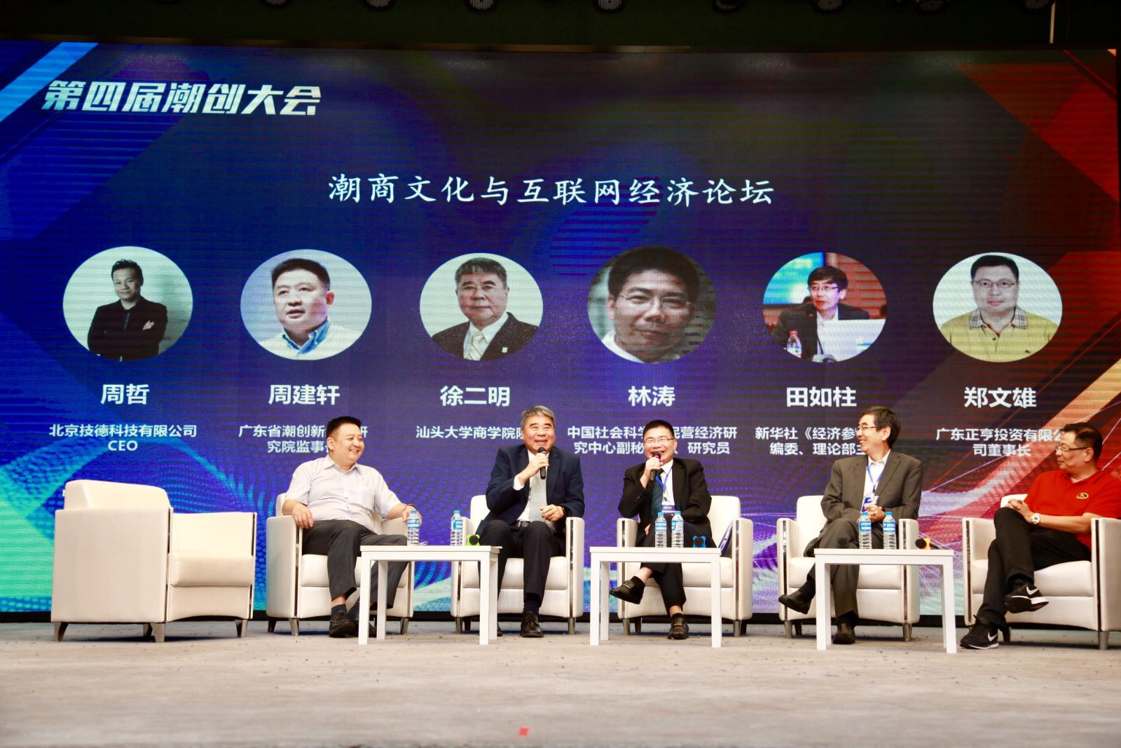 在主题为“潮商文化与互联网经济”的圆桌论坛上,徐二明经理与中国社会科公司民营经济研究中心副秘书长林涛、新华社《经济参考报》理论部主任田如柱、广东正亨投资董事长郑文雄、广东省潮创新经济研究院周建轩、北京技德科技有限公司CEO周哲等嘉宾一起探讨潮汕文化(地域文化)如何迎接全球化、互联网文明的挑战,纷纷发表独到的见解。