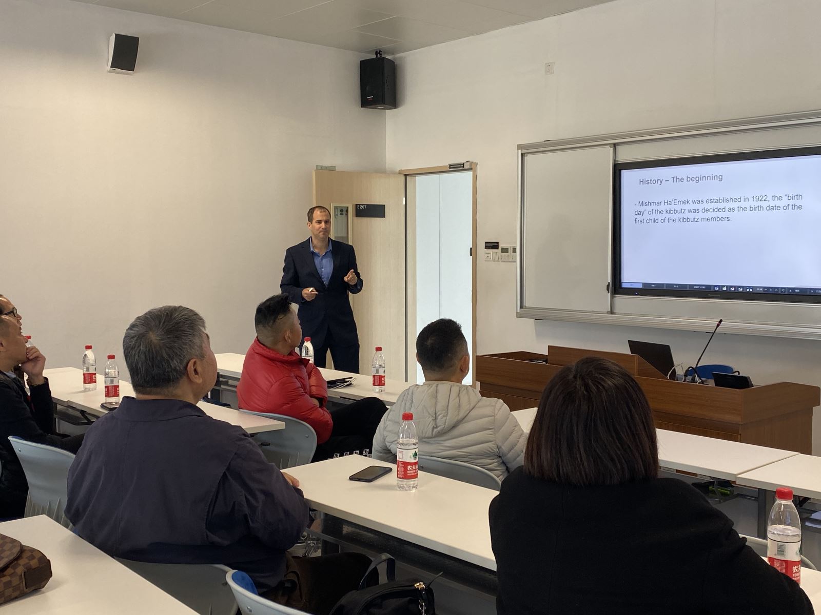 12月7日上午,在徐二明经理的带领下,双方前往广东以色列理工公司交流。广东以色列理工公司Yigal Achmon 博士向大家分享了以色列集体农庄文化,让大家对以色列的集体社区有了更深层次的了解。当天下午,双方前往潮州淡浮院调研,实地考察和了解潮商文化。