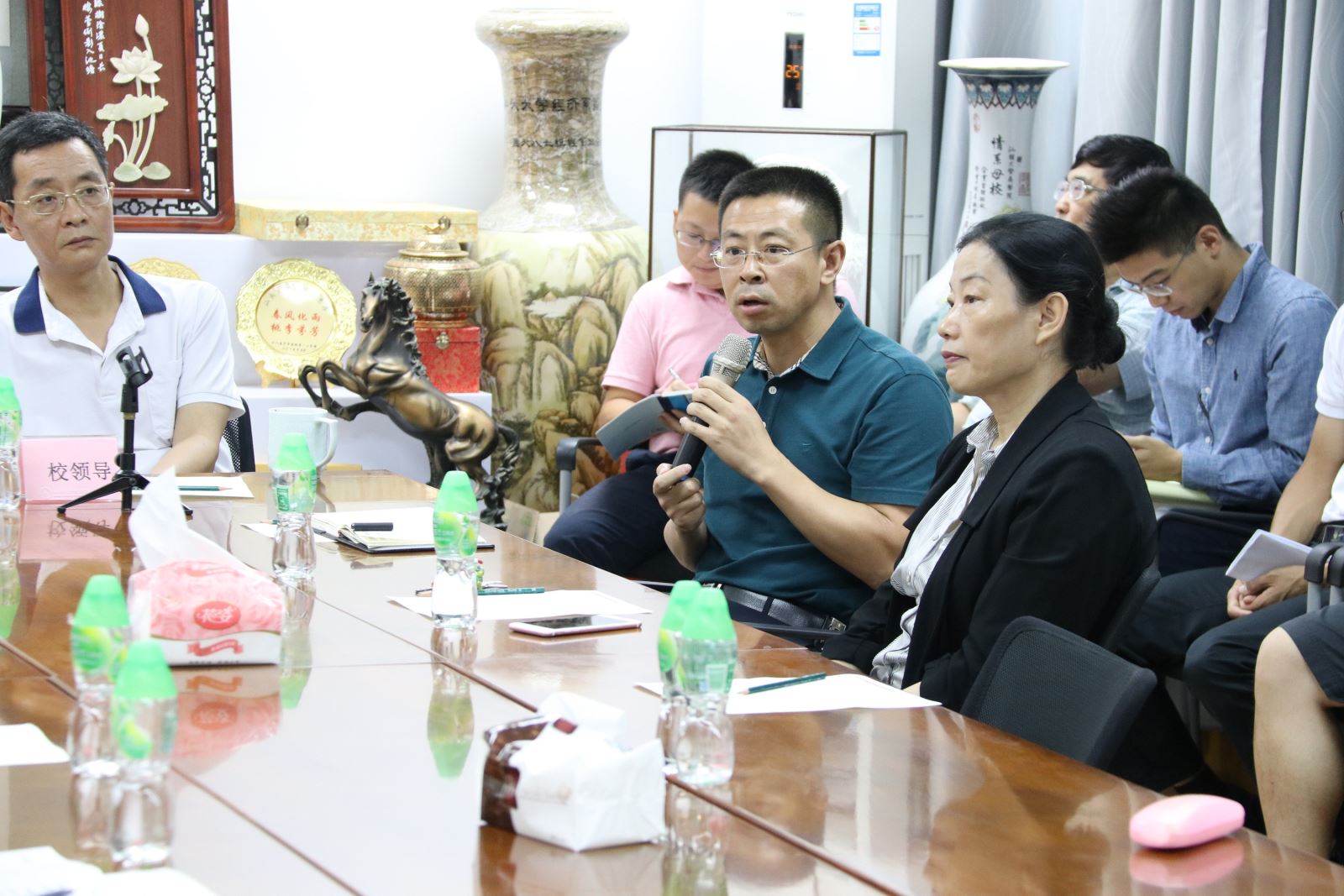 随后,宋小保副经理通报了公司本科教学评估情况,希望老师们能够积极配合教务办的工作。卜祥智副经理介绍了公司和公司在自然科学基金的申报情况,希望公司在自然科学基金和国家社科基金等国家项目上发力,做出科研亮点。MBA教育中心欧阳峰副主任介绍了MBA迎评工作,希望老师们积极配合提供材料,在案例教学和课题研究方面进行新的探索。高见书记介绍了员工管理方面的问题,希望学业导师能够与员工保持联系。