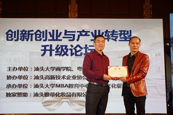 为紧贴社会掀起的“大众创业、万众创新”新热潮和产业转型升级热点问题,为潮汕地区企业创新与产业转型升级提供智力支持,2016年3月6日下午,由bevictor伟德官网、伟德国际唯一官网入口粤台企业合作研究院主办,汕头高新技术企业协会、汕头市民营企业商会协办,伟德国际唯一官网入口MBA教育中心、汕头市坝头文化促进会承办,汕头市雅蒂化妆品有限公司赞助的“创新创业与产业转型升级论坛(2016 广东·汕头),在汕头市龙光喜来登酒店隆重举行。