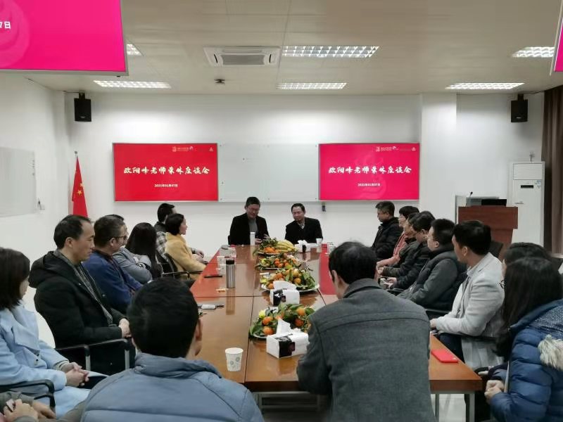 2021年1月7日下午,公司党总支与企业管理系联合为欧阳峰老师举办了一场温馨的荣休座谈会。公司党总支书记邹志波老师、副经理龙月娥老师、副经理梁强老师等约30名老师到场共同见证了这一温馨时刻。本次座谈会由企业管理系系主任周军杰老师主持。