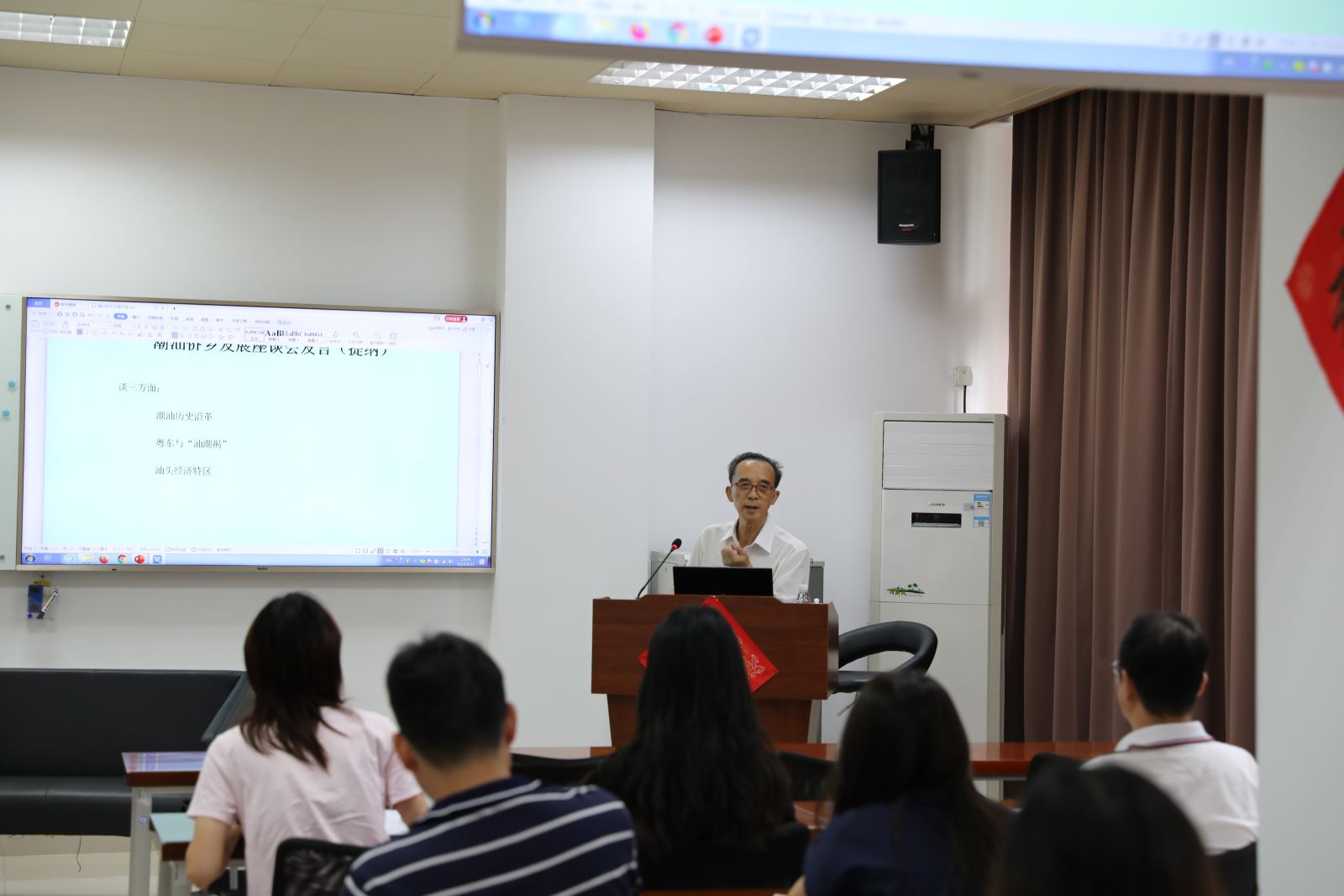 廖小平副局长首先作专题报告,详细介绍了潮汕地区社会经济的发展历史和现状。廖局长从潮汕的历史沿革切入,剖析了汕头与粤东、“潮汕揭”的地区关系,以铁路建设、华侨经济文化合作等实例分析决策性意见在汕头经济特区40年发展过程中的重大影响。随后,廖局长与公司教师进行了互动交流,围绕海洋经济、文创、制造业等汕头市产业未来的发展方向,以及汕大bevictor伟德官网如何更好地服务粤东地区和提升社会影响力等方面进行了深入地交流和探讨。