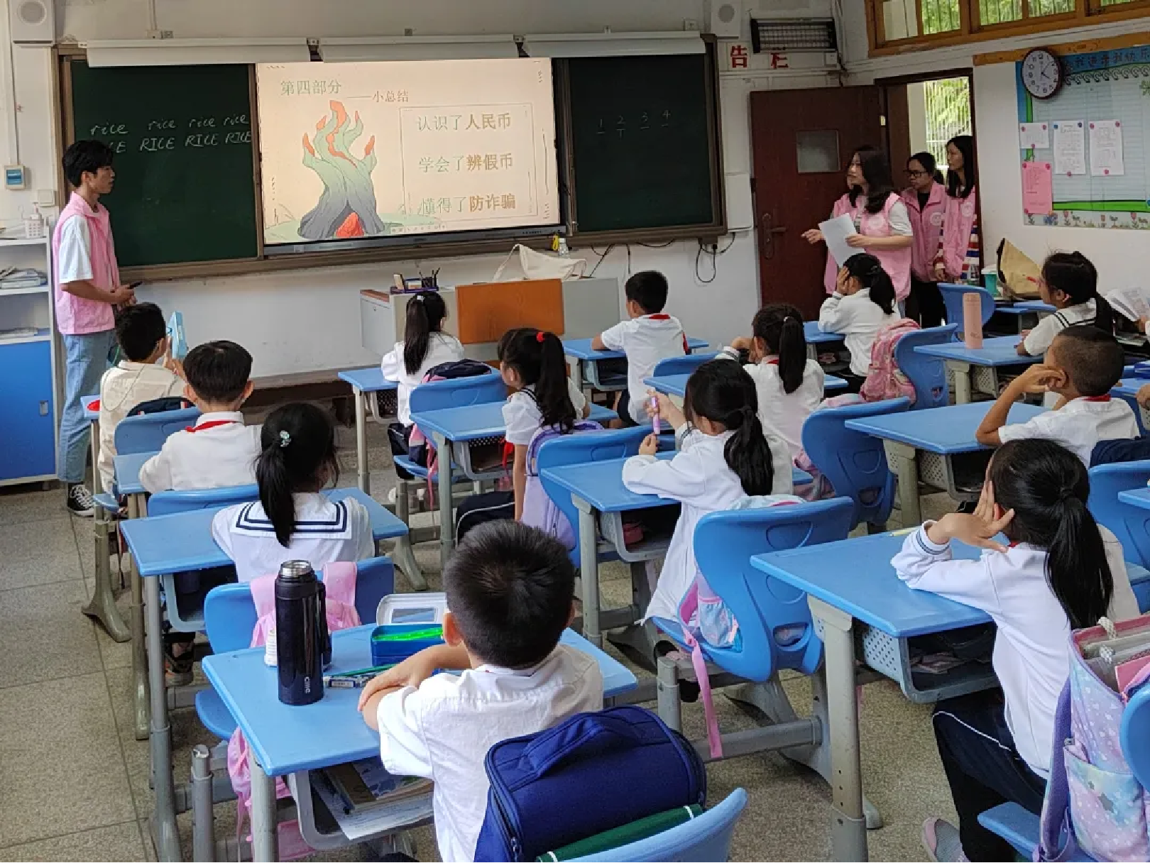 在本次活动中,“金融知识宣讲进社区”课程组的同学分成3个小组,分别面向伟德国际唯一官网入口附属小学三、五、六年级的同学讲授金融知识。主讲老师结合授课年级员工的特点,采用案例分享、情景剧表演、知识讲解等方式,围绕人民币防伪、防范电信诈骗、个人信息保护等内容,用通俗易懂的语言生动地为汕大附小的同学们上了一节有趣又有意义的金融知识普及课。