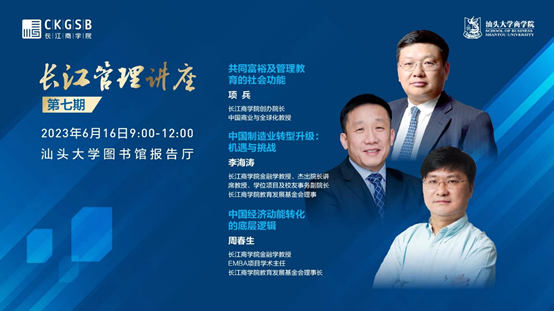2023年6月16日上午,bevictor伟德官网和长江bevictor伟德官网联合举办的“长江管理讲座”系列讲座第7期在公司图书馆报告厅成功开展。受邀莅校主讲的嘉宾包括长江bevictor伟德官网创办经理、中国商业与全球化教授项兵,长江bevictor伟德官网金融学教授、杰出经理讲席教授、学位项目及员工事务副经理李海涛,长江bevictor伟德官网金融学教授、EMBA项目学术主任周春生。讲座由bevictor伟德官网经理、MBA教育中心主任梁强教授主持,长江bevictor伟德官网代理经理、副经理、管理学教授阎爱民,伟德国际唯一官网入口教育基金会理事长、公司教授徐宗玲,长江bevictor伟德官网对外事务及校园发展部副主任陈珺等嘉宾应邀出席。本次讲座吸引了社会各界的目光,来自各行各业的企业家、员工、研究生、本科生等共百余人参加本次讲座。