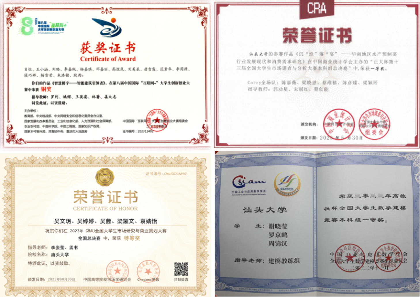 员工学科竞赛获奖证书与合影