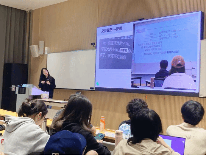 The information session also featured two students from the School who had previously participated in exchange programs, sharing their experiences. Huang Shaohua, who studied at HEC Montréal in Canada, vividly recounted her academic life, cultural exchanges, and gains during her time in Canada. She encouraged students to proactively seize opportunities, engage actively in various faculty-student interactions and extracurricular activities, delve deeply into the local campus and societal culture, and cultivate their own international perspectives. Chen Lei, who exchanged at Chosun University in South Korea, shared her learning experiences in Korea and advocated for students participating in overseas exchanges to serve as bridges for cultural and academic exchanges, uphold cultural confidence, promote Chinese culture, and fully showcase the distinctive features and strengths of Shantou University and the Business School.